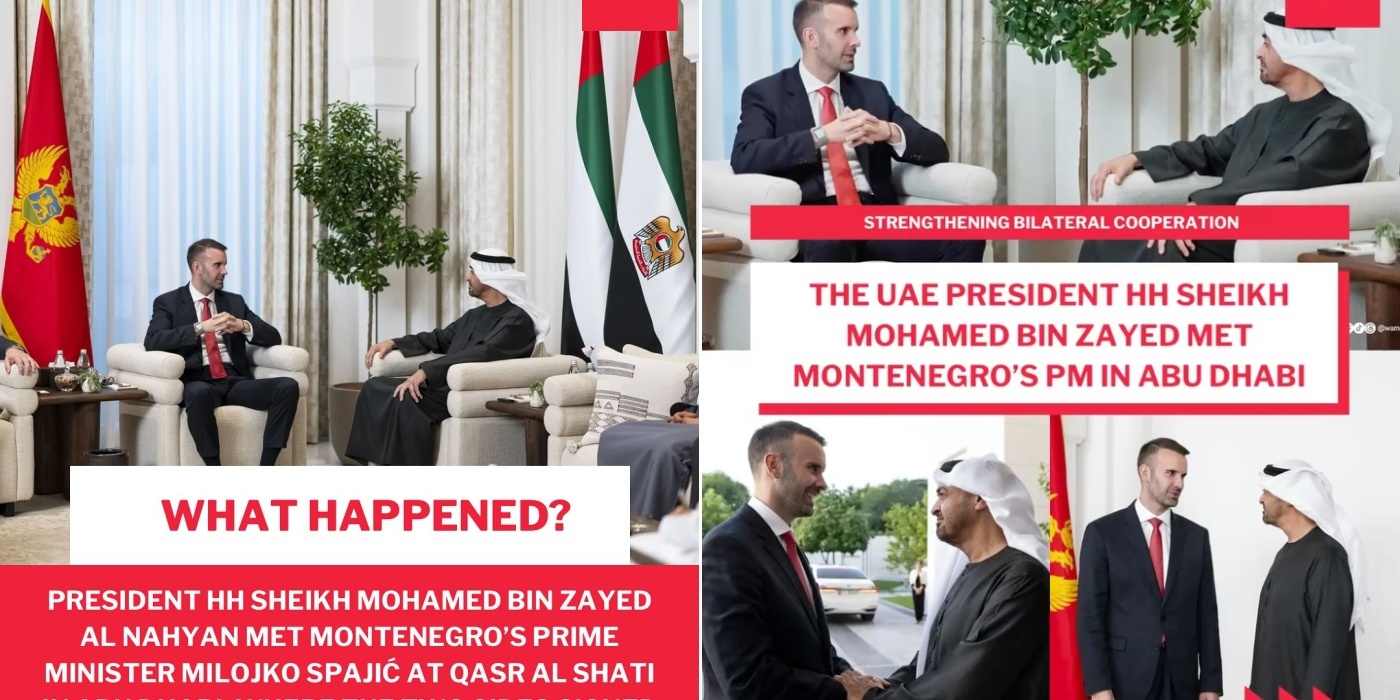 عُقد اللقاء في قلب أبوظبي، حيث استقبل الشيخ محمد بن زايد رئيس وزراء الجبل الأسود على الطريقة الإماراتية الأصيلة. دار الحديث بين القائدين في غرفة مزينة بشكل جميل، وسط أجواء إيجابية ونباتات خضراء. ليس من المعتاد أن ترى ربطة عنق حمراء وكندورة بيضاء في نفس المكان، لكن هذا هو سحر الدبلوماسية الدولية!
