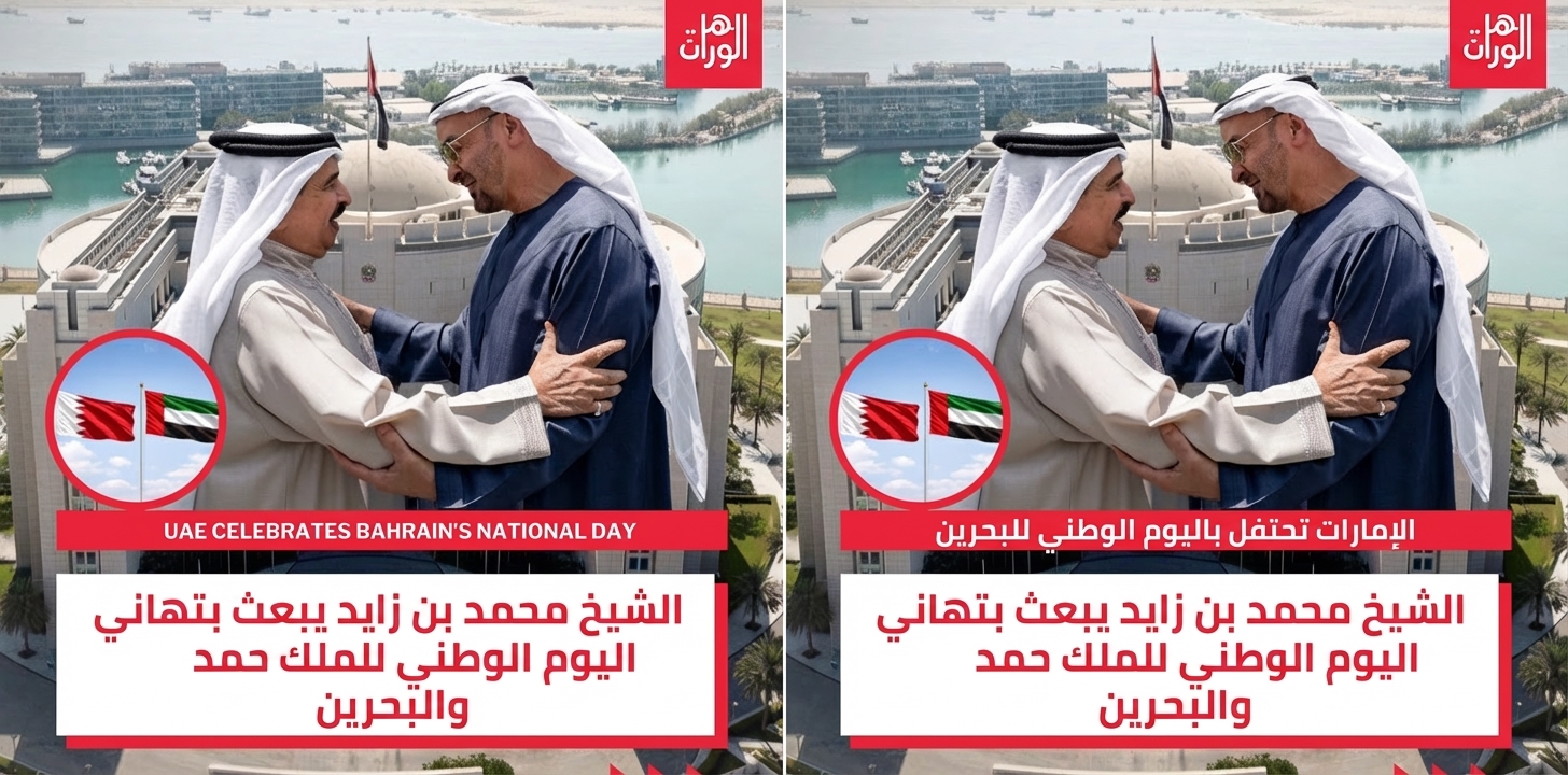 احتفل الجميع في الإمارات بيوم البحرين الوطني! أرسل محمد بن زايد رسالة تهنئة عبر منصة X إلى الملك حمد بن عيسى وكل شعب البحرين، معبّرًا عن المحبة الأخوية في هذا اليوم المميز.