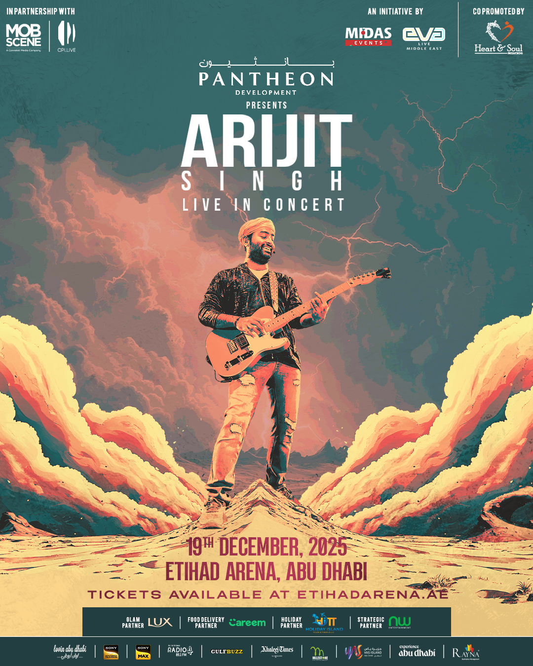 Presented by Pantheon Development, this initiative by Midas Events & Eva Live Middle East will be a special night that brings together music lovers from across the Indian subcontinent, all thanks to an artist who has become a household legend with his unforgettable music – Arijit Singh!