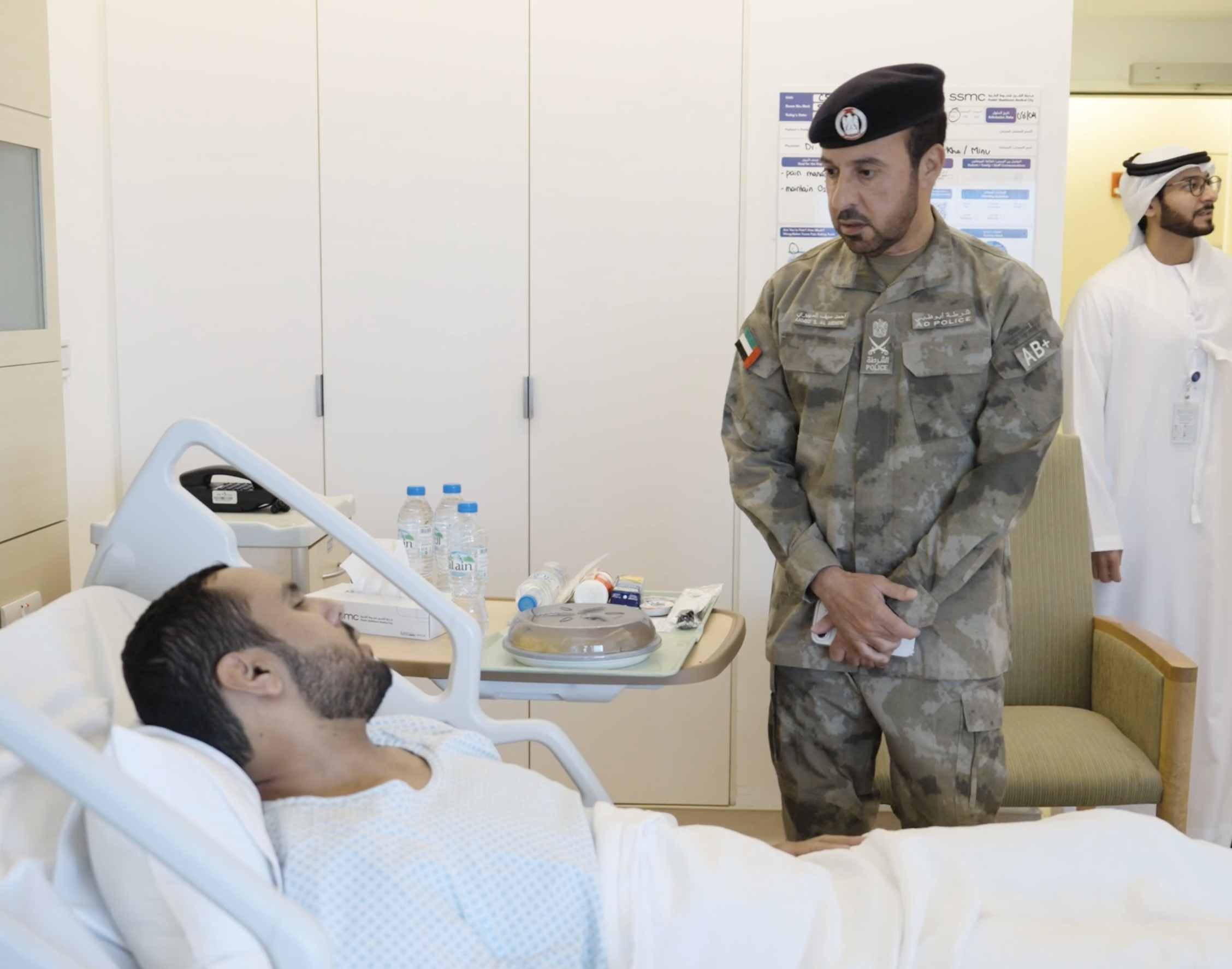 Major General Ahmed Saif bin Zaitoon Al Muhairi visited Sheikh Shakhbout Medical City to check on those injured in the recent Iranian attacks and follow up on their recovery. He was joined by a number of senior officials, including representatives from Abu Dhabi’s emergency and health sectors.