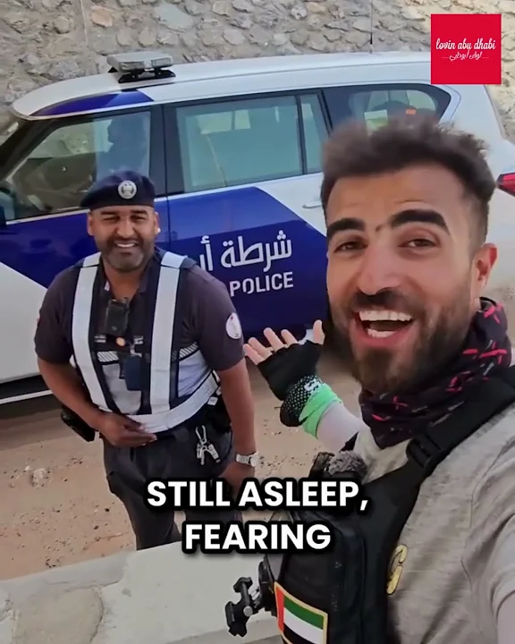 Abu Dhabi Police stops to hand cold water to a traveler, 469
