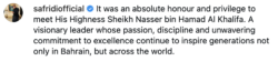 His Highness Shaikh Nasser bin Hamad Al Khalifa, Representative of His Majesty the King for Humanitarian Work and Youth Affairs, officially received Shahid Afridi yesterday, underscoring Bahrain’s unwavering commitment to the continued development and international presence of cricket within the Kingdom.