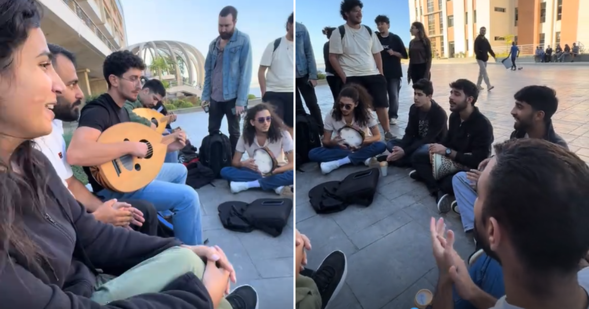 When uni breaks turn into jam sessions, you know you’re in Lebanon! A bunch of talented students grabbed their instruments, gathered in a circle, and let the music take over. The result? Pure joy, clapping, and lots of singing.