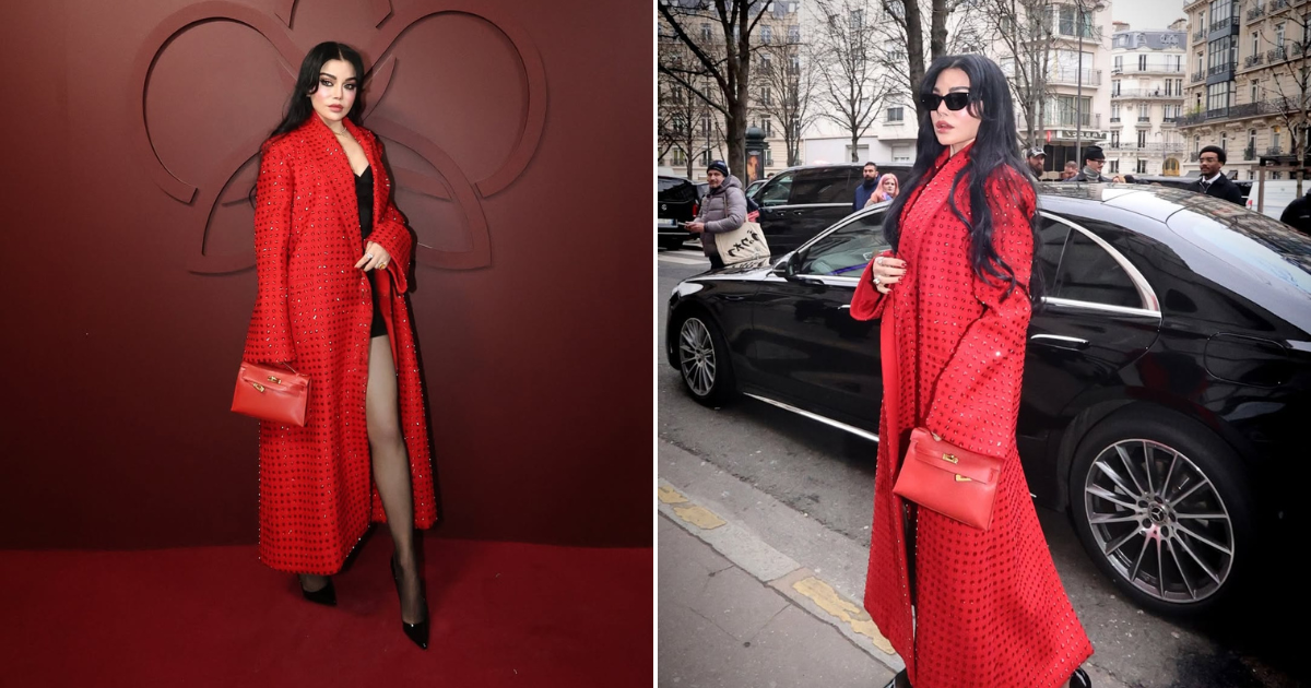 Haifa Wehbe made a jaw-dropping entrance at Georges Hobeika’s show, turning heads from the moment she stepped out. Rocking a bold red coat over a sleek black dress, she instantly became the center of attention, with photographers snapping every move.
