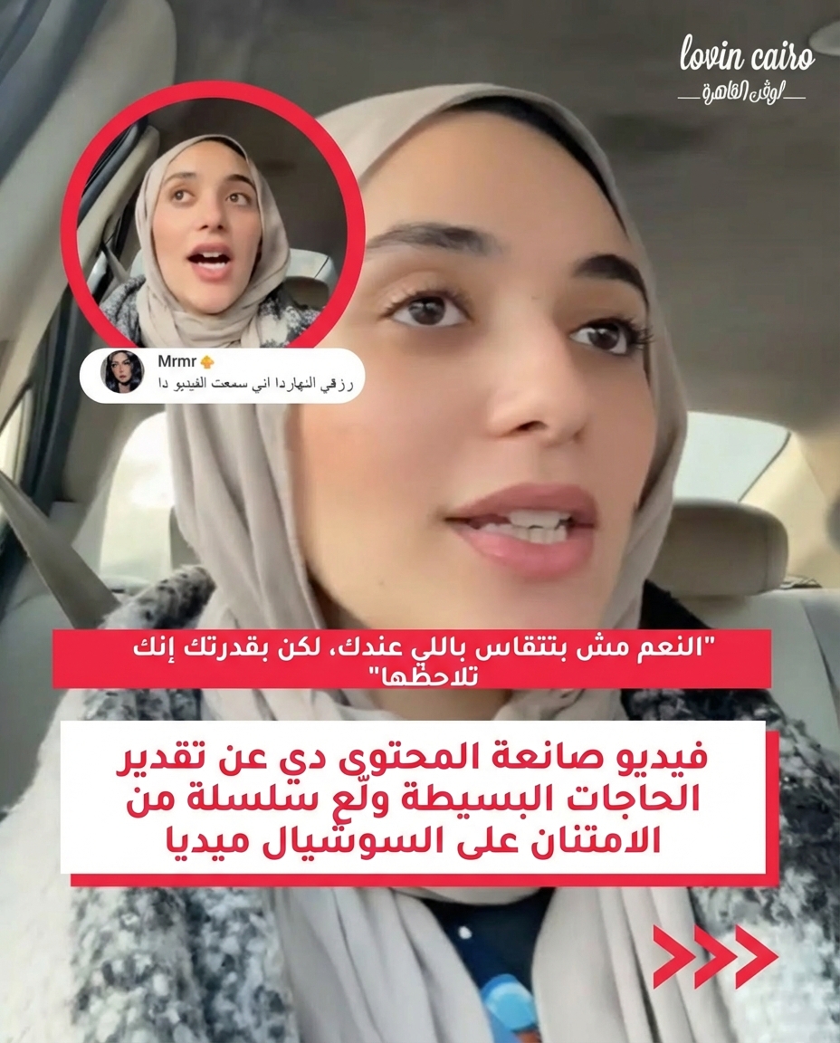 شاركت صانعة المحتوى منى منصور فيديو غيّر وجهة نظرها حقًا، مما دفعها لإعادة التفكير في النعم التي نعتبرها أمرًا مسلمًا به. روت كيف اعتبرت إحدى الأشخاص حصولها على كعكة شوكولاتة بصلصة إضافية قليلاً ‘رزقها’ لهذا اليوم. وأضافت شخص آخر، معبرة عن شعورها ‘بالبركة الشديدة’ في الأيام التي تجد فيها مكانًا لركن السيارة بسهولة فور وصولها لمهمة ما. الأمر كله يتعلق بملاحظة تلك الانتصارات الحلوة والبسيطة!