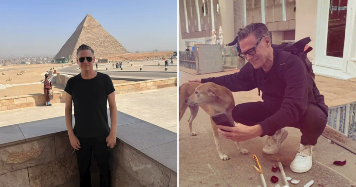Bryan Adams came to Egypt for his first-ever performance in the country on Friday, the 13th of Feb, at the Grand Egyptian Museum, and the night was unforgettable. Fans sang along to his timeless hits, creating memories at the Grand Egyptian Museum and near the Pyramids of Giza. However, his Egypt visit didn’t stop there — Adams truly took the country by storm. He explored the pyramids, chilled by the nile, strolled the vibrant streets of Cairo, and soaked in the culture, history, and energy of the city at every turn. He even spent Valentine’s Day wandering the GEM, where he came across the museum’s famous dog and guardian, Mimi!