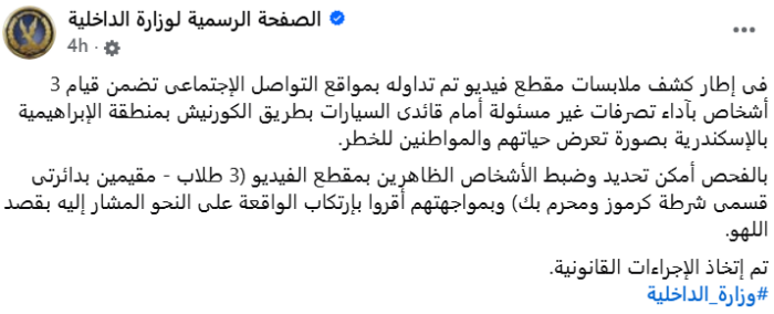The video shows three individuals stepping into traffic in the El-Ibrahimia area of Alexandria, performing actions that clearly put themselves and nearby motorists in danger. The footage quickly went viral on social media, prompting authorities to investigate.