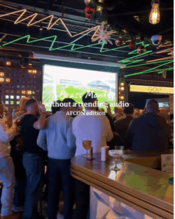 Drinks, screens, and crowd chants included.