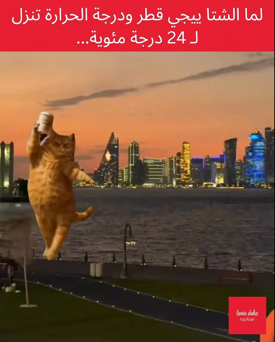 في المرة القادمة التي ترى فيها قطًا فروه كثيف يرقص على أنغام شرقية مع كوب قهوة في يده، تذكر فقط: إنه الشتاء في قطر، والحياة تصبح أسعد عشر مرات عند 24 درجة مئوية!