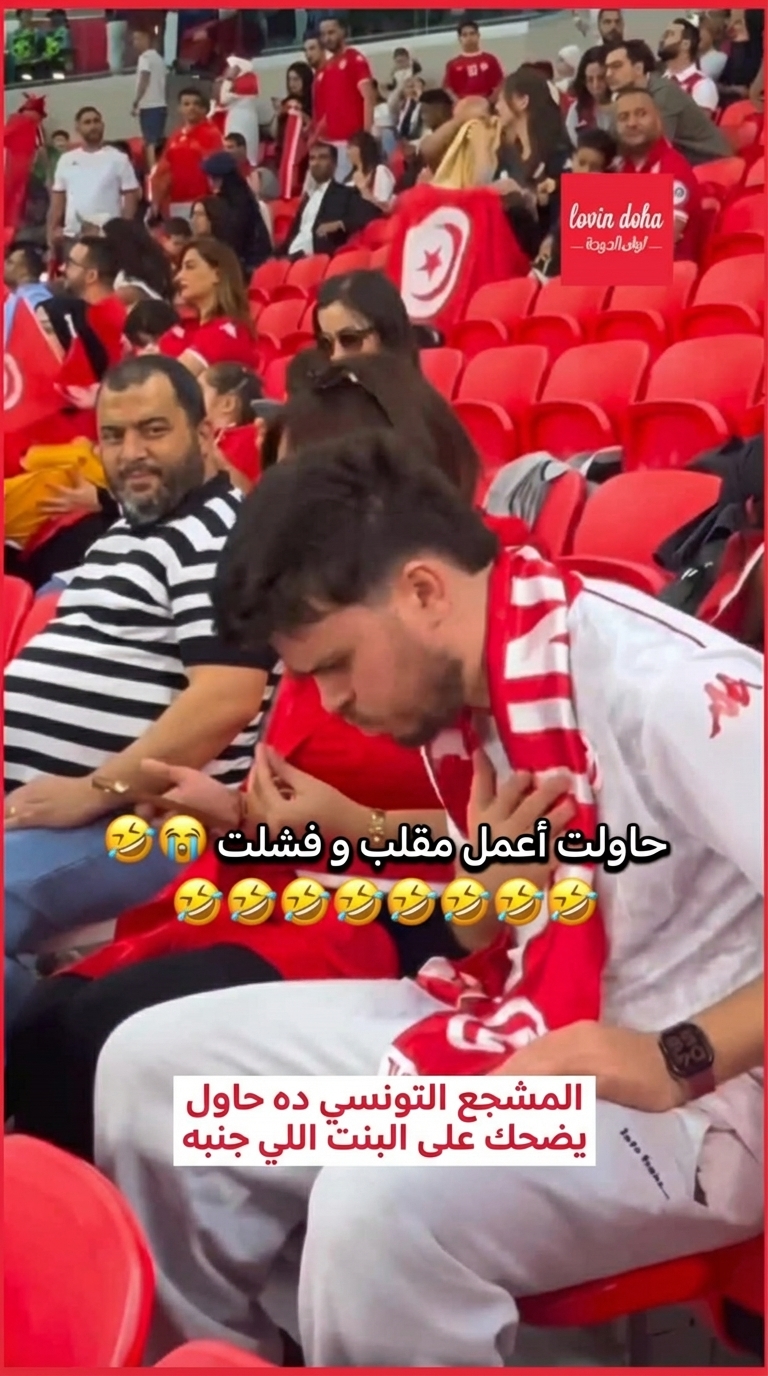 حاول مشجع تونسي في كأس العرب في قطر أن يضيف بعض المرح للمباراة بحركة مقلب، لكن الخطة لم تسر كما أراد! جلس بجانب فتاة ترتدي قميصًا أحمر، وحاول أن يخدعها بحيلة بسيطة باستخدام حلوى ملونة طويلة، لكن بدل أن ينجح في المقلب، تحولت اللحظة إلى ضحك جماعي.