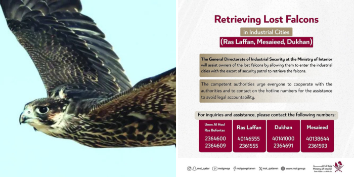 Hey Doha fam, if you’ve ever panicked over a missing falcon, here’s some good news! Qatar’s Ministry of Interior is stepping in to help owners safely retrieve lost birds from industrial areas like Ras Laffan, Mesaieed, and Dukhan.
