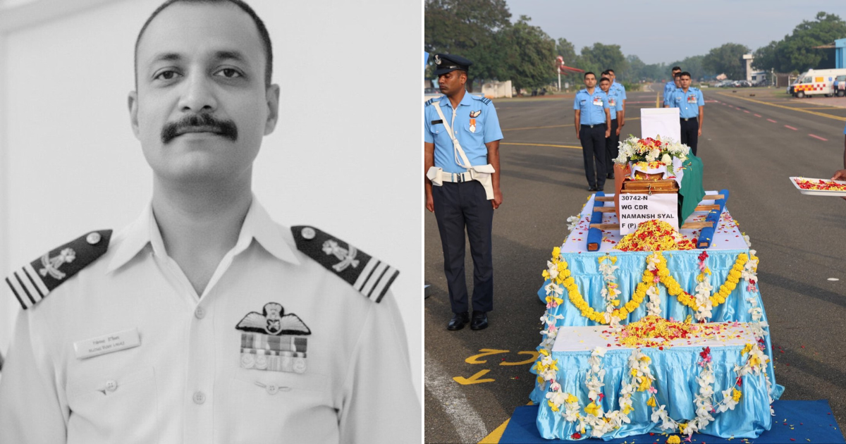 On the tarmac, a sea of uniforms and flowers surrounded the casket of WG CDR Namansh Syal. The decorated stand, draped in light blue and gold, was a fitting tribute to a man who dedicated his life to the skies. The air was thick with respect as fellow officers stood in solemn formation, paying their last respects to their comrade.