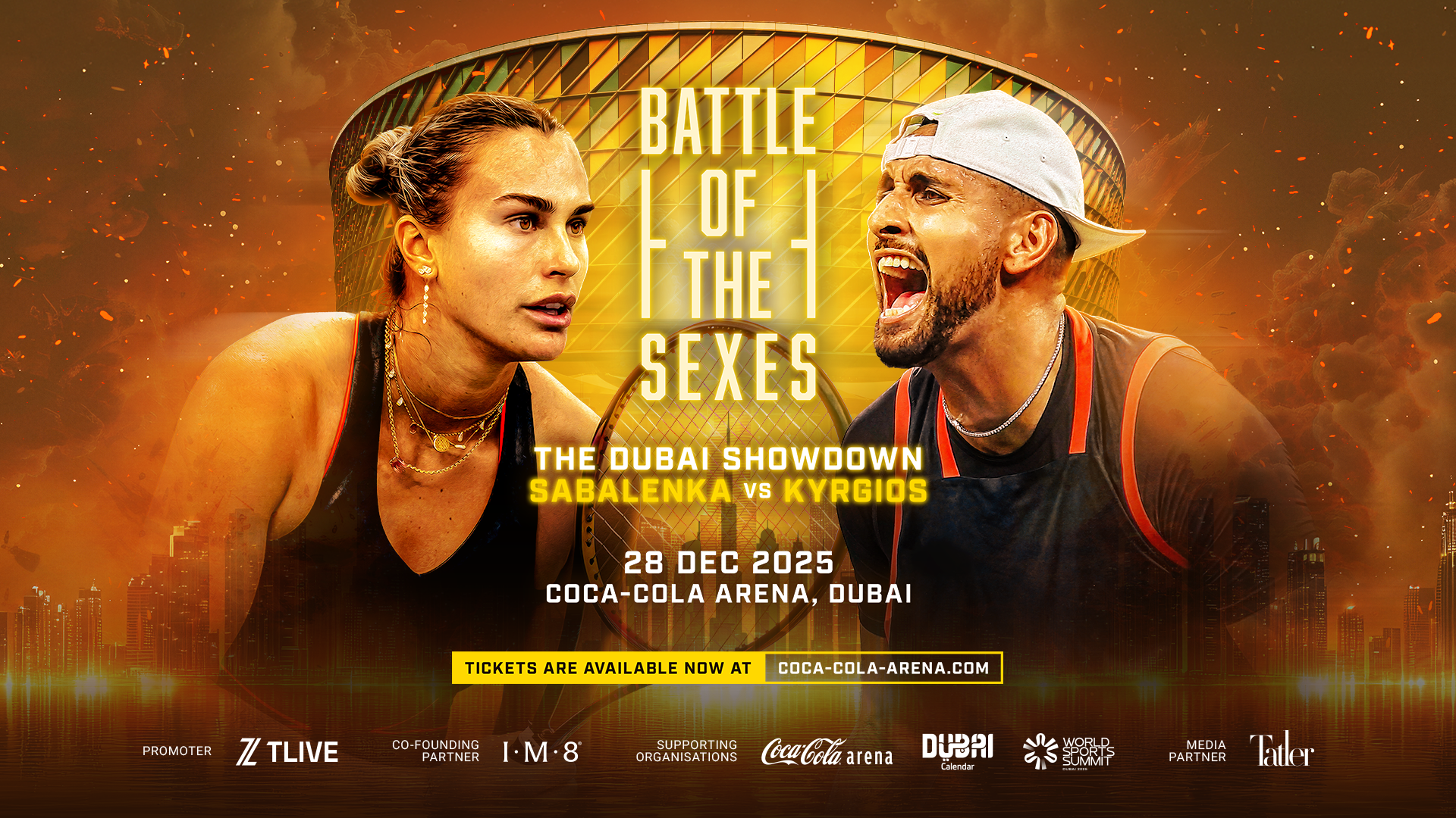 Dubai is gearing up for one of the biggest sporting spectacles of the year. On December 28, 2025, the Coca-Cola Arena will host Battle of the Sexes: The Dubai Showdown, a one-night-only cultural moment where two of tennis’s most electrifying stars, Aryna Sabalenka and Nick Kyrgios, go head-to-head in a global showdown that blends elite competition, blockbuster entertainment, and Dubai-scale spectacle.