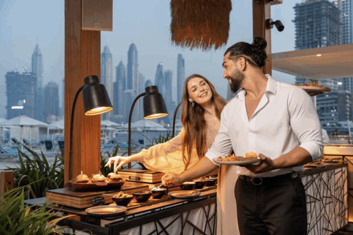Picture this: the sun setting over Dubai Marina, JBR, and Bluewater’s Island, cocktails in hand, and the infectious beats of DJ GROOVEGOUNDZ setting the mood. Whether you’re gathering family, friends, or work buddies, this is the perfect spot to kick off the weekend in style.