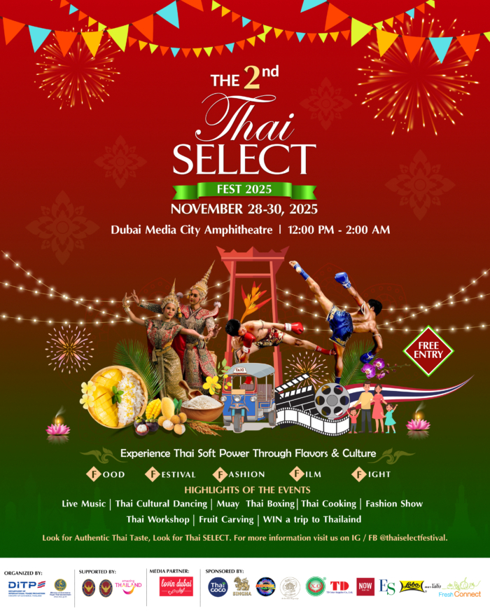 “The Thai SELECT Festival is all about sharing Thailand’s creativity, hospitality, and culture with the world,” says Pitichai Ratananaka, Director of the Thai Trade Center Dubai. “It’s the perfect way for people in Dubai to experience authentic Thai vibes, from food to arts to smiles.”