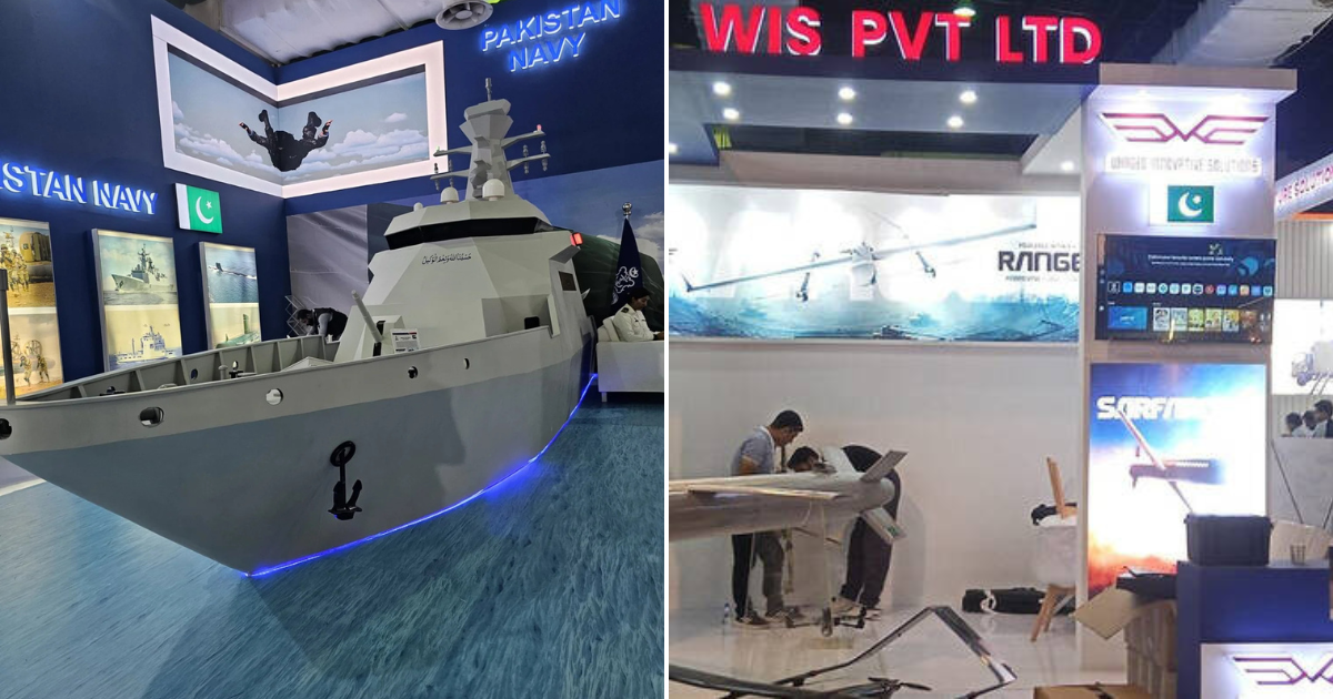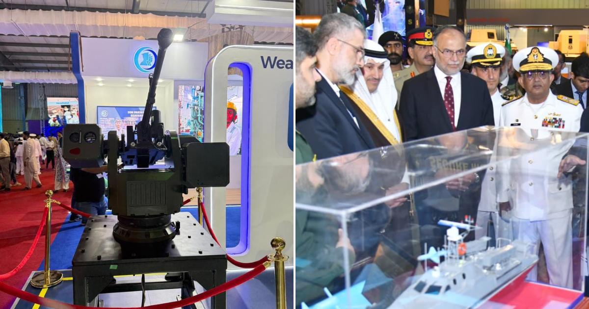 The National Electronics Complex of Pakistan (NECOP) demonstrated the SAFRAH drone jamming gun, which can disable drones up to 1.5 km away for 40 minutes. NECOP also revealed a maritime logistics drone and the Integrated Platform Management System (IPMS), letting ships monitor multiple systems from a single control point. Additionally, a Pakistani defence firm displayed a 25-foot remote-controlled USV capable of traveling 30 km and running for up to five hours.