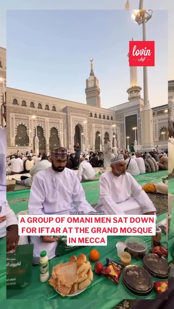 Omani Men Share Joyful Iftar at Mecca’s Grand Mosque
