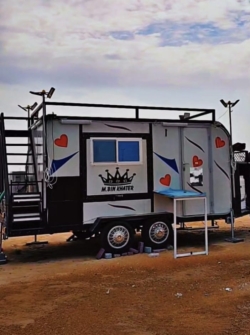 The theme spills outside too – his caravan is decked out with hearts, and he’s always happy to share his house plans with curious fans.