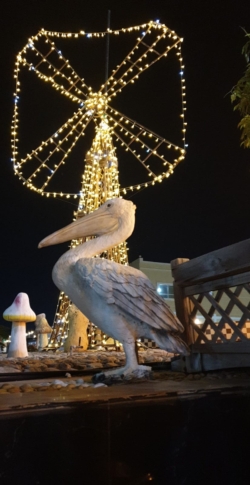 By day, the Heart House shines with its golden hearts, red arches, and lush gardens. By night, it transforms into a glowing wonderland, with heart-shaped lights and a giraffe statue adding a playful twist.