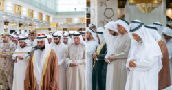 In Ras AlKhaimah, His Highness Sheikh Saud bin Saqr Al Qasimi, Member of the Supreme Council and Ruler of Ras AlKhaimah, joined worshippers in performing the funeral prayer for First Lieutenant Ali Saleh Ismail Al Tunaiji.