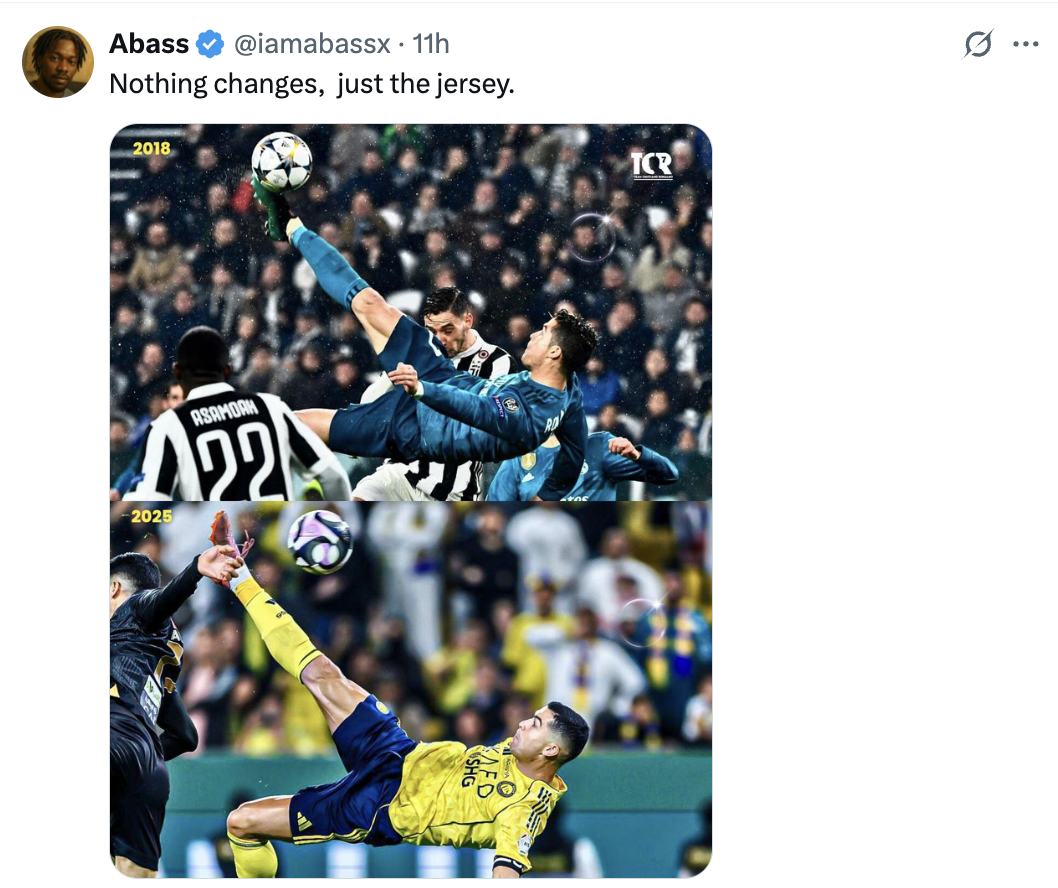 The verdict: Ronaldo didn’t just score a goal, he dropped a highlight so outrageous that the entire internet collectively screamed. A true GOAT moment.